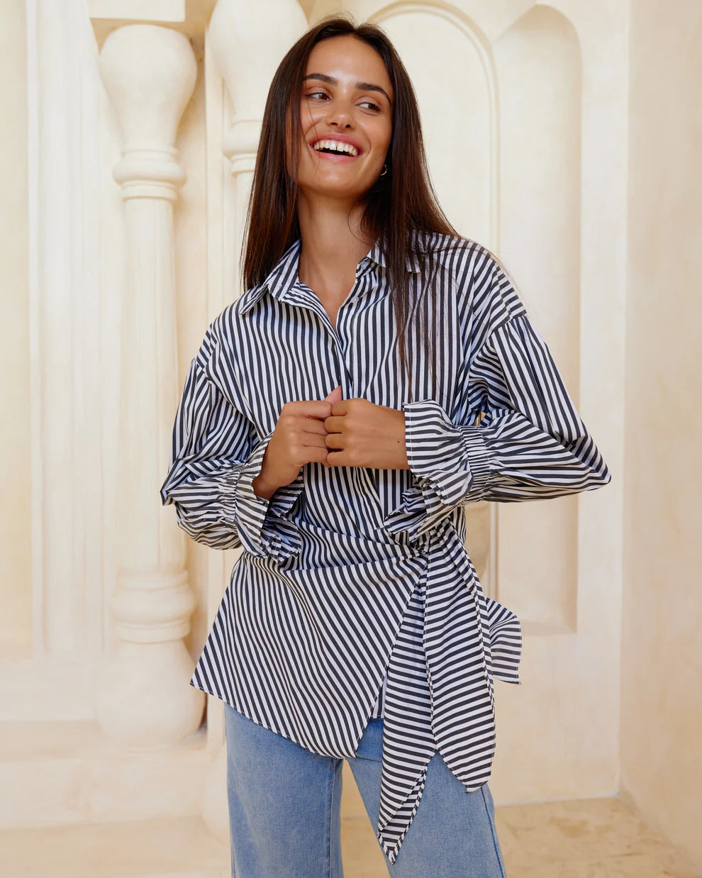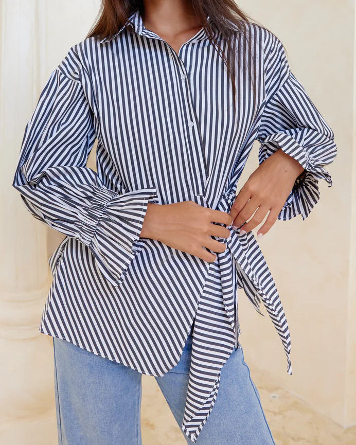 Discover the playful charm of the Tallulah Shirt, featuring a trendy tiered front that adds a fun twist to your everyday look. With elasticised wrists for a comfy, snug fit, this shirt effortlessly blends style and ease. Perfect for those who love a little flair with their comfort!