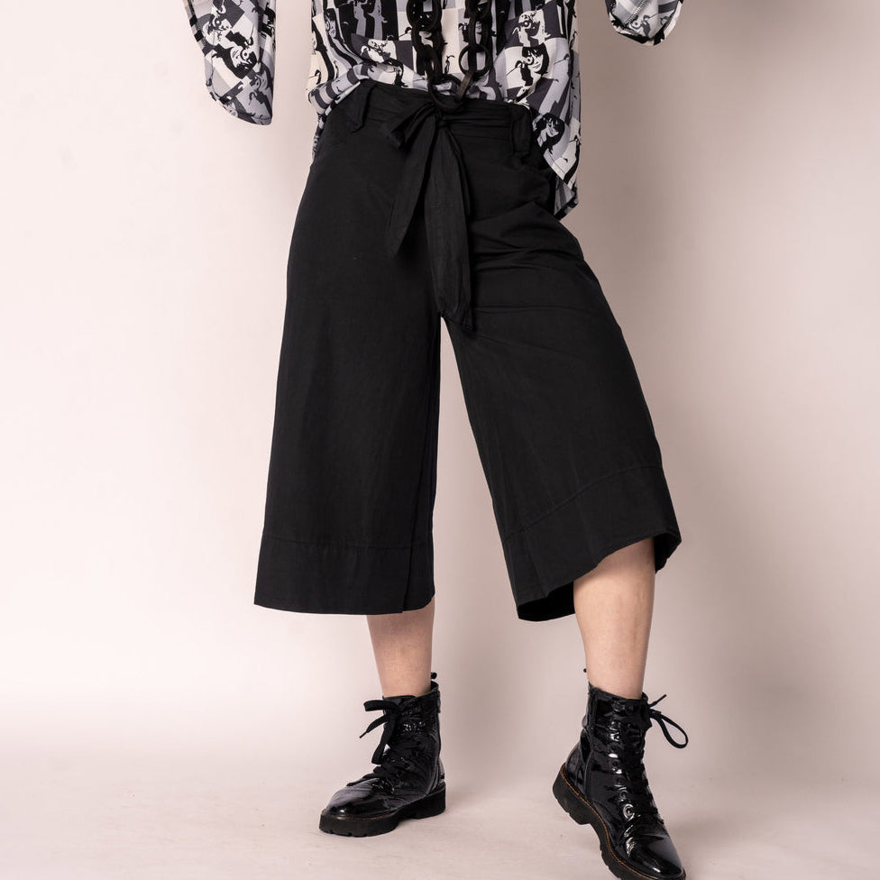 Designed for comfort with a modern, relaxed silhouette. Crafted from soft cotton, these 3/4 length pants offer breathability and graceful movement, making them a warm-weather essential. The flattering flat front is complemented by an elasticised back waistband for a comfortable fit, while subtle waist tabs and a delicate soft tie add thoughtful detail and adjustability. Functional side pockets bring practicality without compromising the streamlined look.